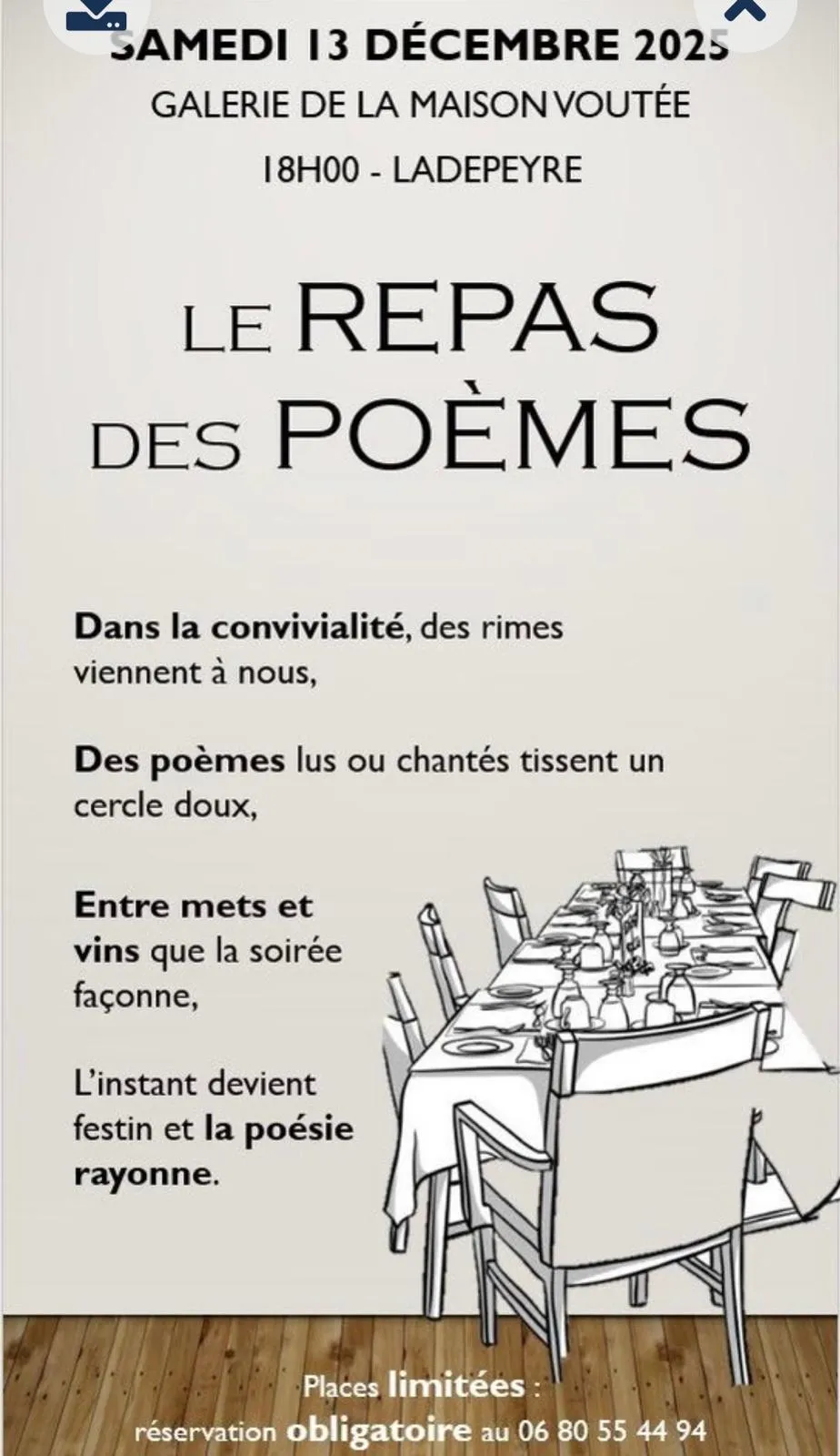 Le Repas des Poèmes – Samedi 13 décembre 2025 à 18h à la galerie de la Maison Voûtée à Ladepeyre